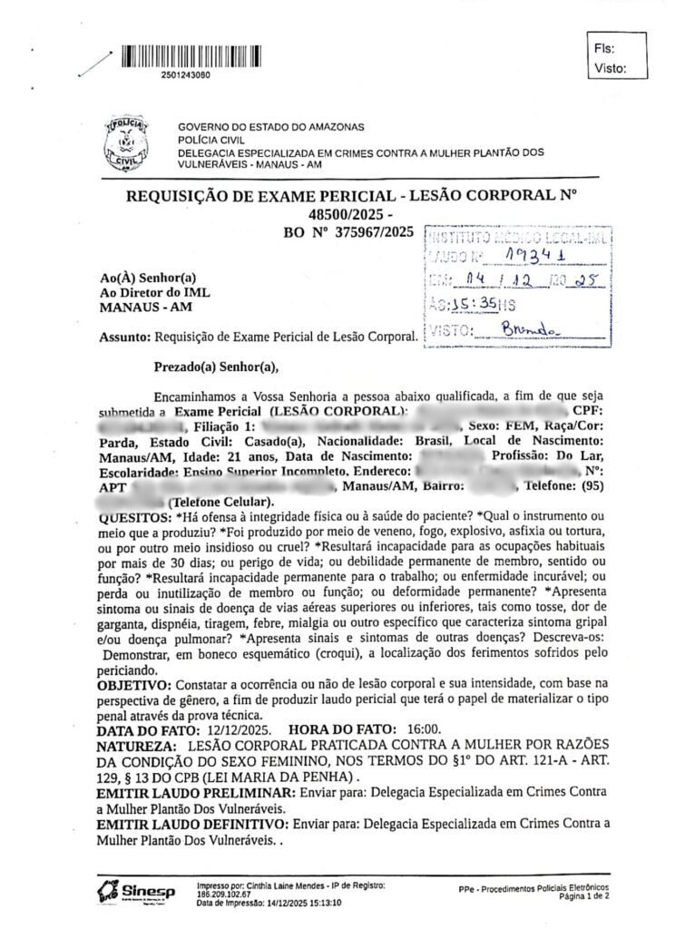 Esses relatos reforçam o padrão de violência doméstica em Manaus , que segue sob apuração das autoridades policiais.