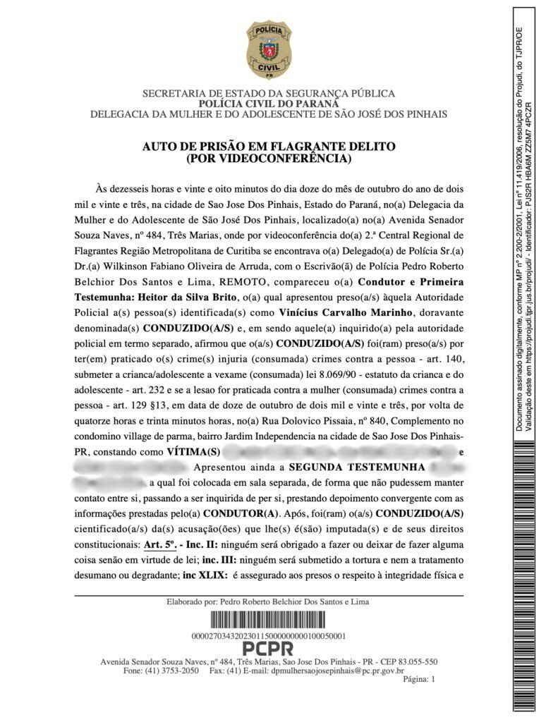 Enquanto isso, a vítima permanece sob proteção judicial, recebe apoio da família e conta com acompanhamento das autoridades.